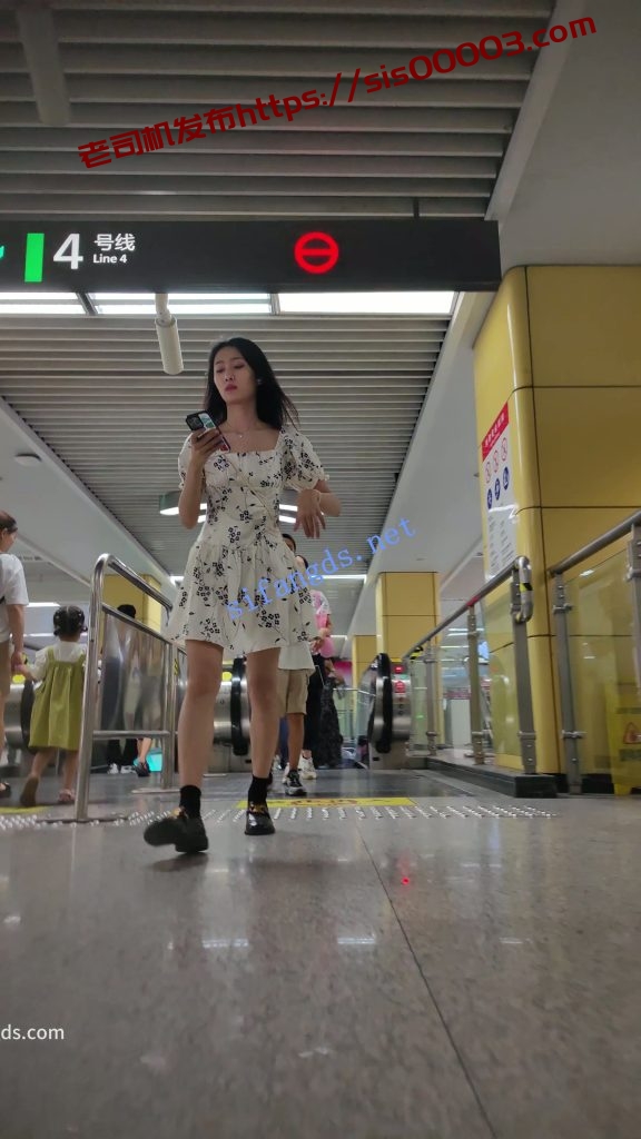 •  白色印花连衣裙小姐姐等地铁抄底,黑色内带翅膀