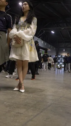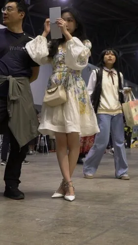 在展会墙边休息的时候偶然看到旁边的百褶裙cos美女坐在地上,裙底内裤露出,这么...