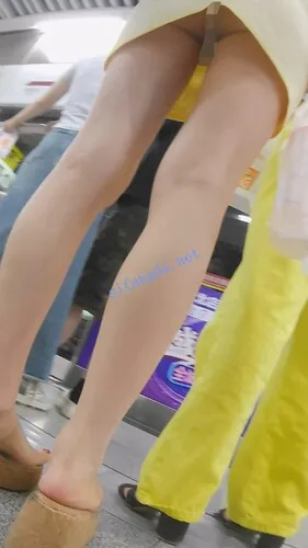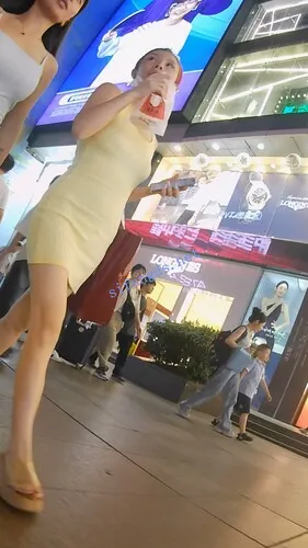 两位小姐姐逛街竟然都不穿内衣,蓝色包臀裙小姐姐裙子超级短,背面视角隔着裙子...